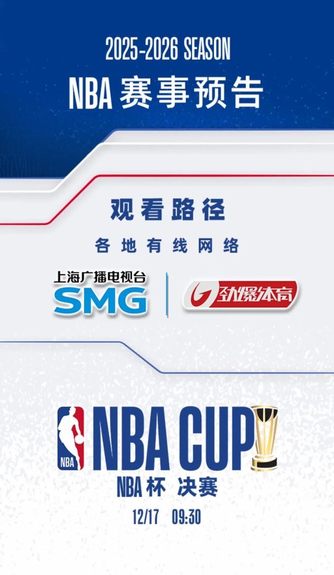 本赛季的NBA杯决赛将在北京时间12月17日上演,由马刺对阵尼克斯,两队都是首次闯入决赛。一边是终结雷霆16连胜、依靠团队篮球和防守韧性的青年军,一边是近10战9胜、凭借布伦森半决赛40分表演驱动进攻的东部劲旅,究竟谁能斩获队史NBA杯首冠?在这里小编提醒您关注劲爆体育频道!12月17日,让我们一同见证NBA杯冠军的诞生!与此同时,劲爆体育频道还将为您带来精彩的常规赛较量,更能和杨瀚森一同闯荡NBA!