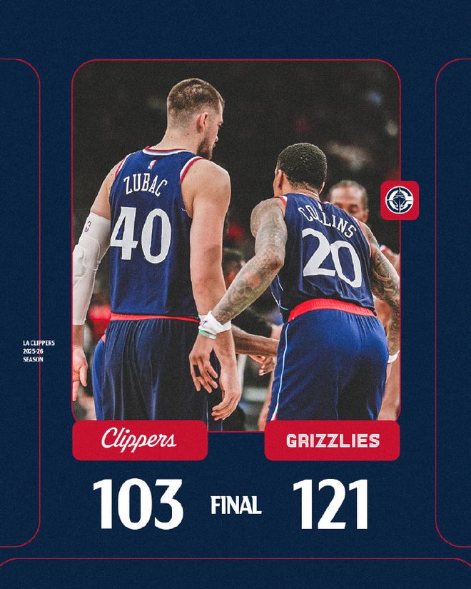 • 快船103-121灰熊遭4坏消息!伦纳德+祖巴茨下滑严重,替补纯烂!